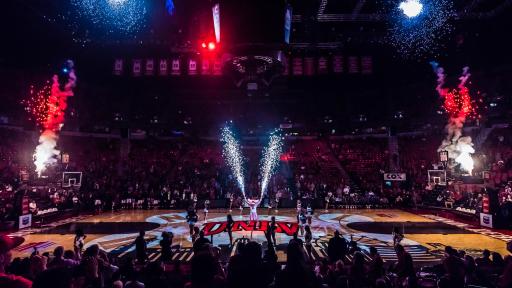LONG BEACH, Calif. – March 7, 2018 – Epson and 4Wall Entertainment help deliver the ultimate projection mapping experience for UNLV Runnin’ Rebels basketball fans. 4Wall Entertainment, a leading event equipment company specializing in providing quality lighting and video equipment, chose Epson Pro L25000U Laser WUXGA 3LCD projectors to power UNLV’s immersive pregame experience through the art of projection mapping across Tarkanian Court at the Thomas & Mack Center.