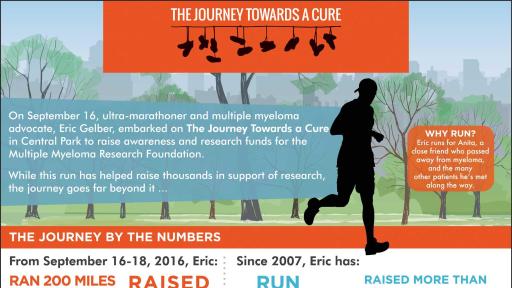 PR Newswire, New York, NY – September 20, 2016 – This weekend, ultra-marathoner and multiple myeloma advocate, Eric Gelber, made history by completing a record 200 miles around New York’s Central Park to raise awareness and research dollars for the Multiple Myeloma Research Foundation (MMRF) during Blood Cancer Awareness Month. Eric’s “Journey Towards a Cure” for this incurable blood cancer drew support from hundreds of donors, runners and advocates who flocked to Central Park and to the MMRF’s donation page to help him cross the finish line and exceed his fundraising goal, surpassing $1 million as the weekend came to a close. Tribeca Studios was on-site to capture it all as part of a documentary dedicated to highlighting Eric and the MMRF’s innovative research efforts titled, “Just a Mile to Go.”