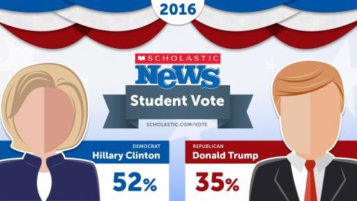 Votes in the 2016 Scholastic News Student Vote were cast by students in all 50 states and the District of Columbia. To see the full results, visit: www.scholastic.com/vote.