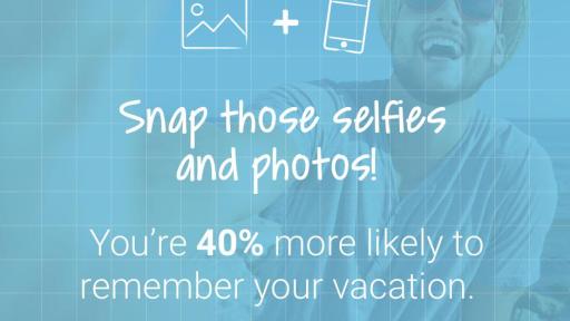Despite conventional wisdom that you should “unplug” on vacation, HomeAway’s research found that those who took photos and selfies on vacation were 40 percent more likely to remember their vacations well than those who didn’t.