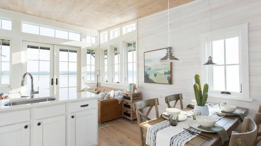 Though the floor plan is compact, homeowners of the Saltbox won’t have to sacrifice having friends over or entertaining. The home is designed to fit a dining room table that seats six, and a covered porch with large overhang means homeowners can utilize outdoor living spaces during different weather conditions.