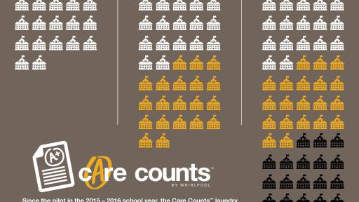 By the 2017/2018 school year, the Care Counts™ laundry program will support students in need across nearly 60 schools throughout the country. Whirlpool is currently running the 2016/2017 Care Counts™ school laundry program in Baltimore, Md., Benton Harbor, Mich., Charlotte, N.C., Nashville, Tenn., and St. Louis, Mo. and is enlisting Teach For America to bring the program into four additional regions for the 2017/2018 school year.