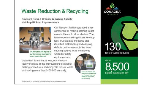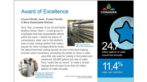 CONAGRA BRANDS HONORS EMPLOYEE COMMITMENT TO REDUCING WATER, WASTE, ENERGY AND COSTS