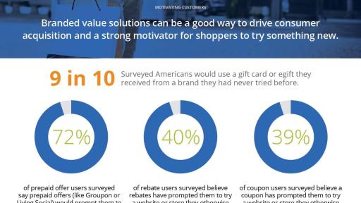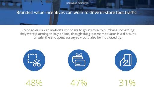 - Branded value can motivate shoppers to go in store to purchase something that they were planning to buy online. Though the greatest motivator is a sale, the shoppers surveyed would also be motivated by a branded value offer (48 percent), a gift card (47 percent), or a rebate paid out on a prepaid card (31 percent.)