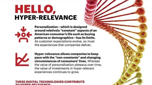 - Investing in precise insights – Hyper-relevant companies invest in predictive analytics, collaborate with an ecosystem of partners to capture real-time customer insight, and mine data in new ways to understand their specific needs.