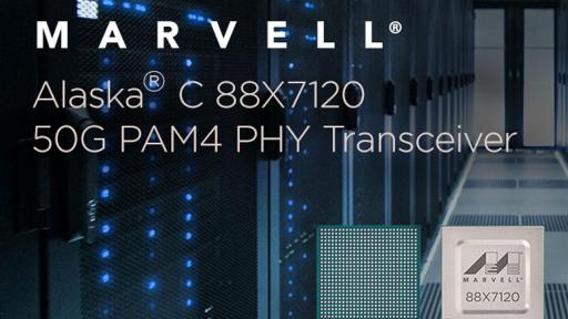 Santa Clara, Calif. (March 5, 2018) – Marvell (NASDAQ:MRVL), a leader in storage, networking and connectivity semiconductor solutions, today announced the launch of the 88X7120, the latest offering in its Alaska® C family of high-speed Ethernet physical layer (PHY) transceivers, designed to improve bandwidth and performance in the data center. The new transceiver is purpose-built to address the transition in hyperscale data centers from 25GbE (Gigabit Ethernet) and 100GbE to 50GbE, 200GbE and 400GbE as new applications like artificial intelligence and machine learning continue to drive exponential processing and I/O bandwidth demands. The 88X7120 addresses this I/O speed transition in hyperscale data centers with support of 16 ports of 50GbE, 4 ports of 200GbE and 2 ports of 400GbE, utilizing 50G PAM4 signaling.