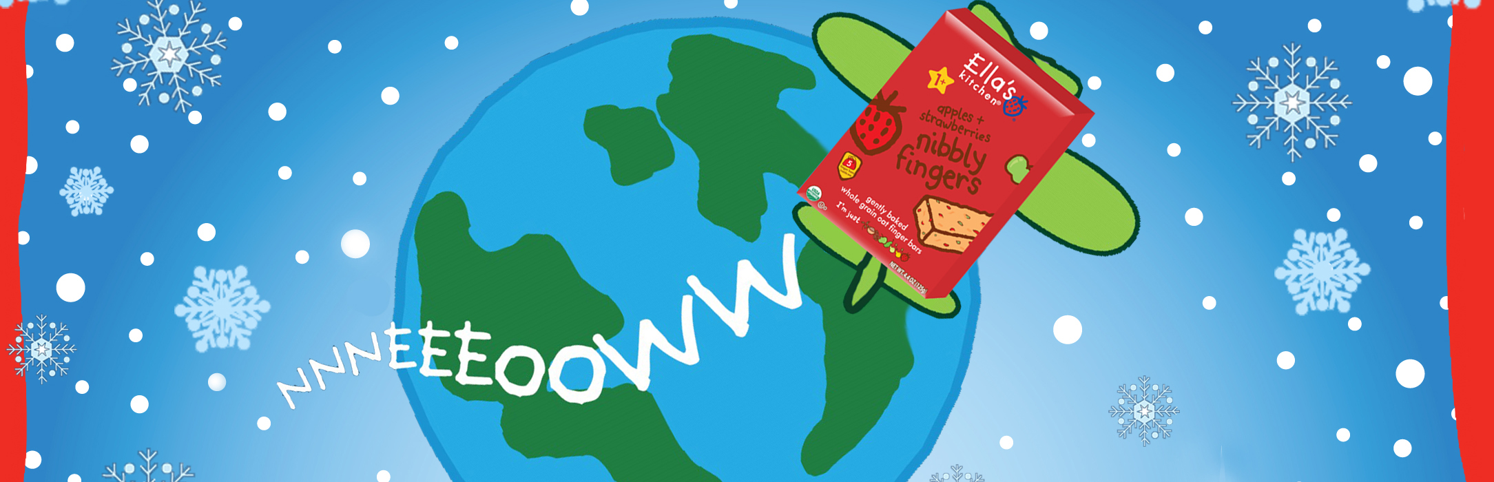- Pack Nutritious Snacks. Holiday travels, whether across country or across town, can often throw off eating schedules, and when kids get hungry, they mean it! If you don’t have time for a full meal, break out nutritious, on-the-go snacks. We recommend keeping a few Ella’s Kitchen Nibbly Fingers in your purse or diaper bag for an organic snack you can feel good about giving your kid. These individually wrapped bars come in three delicious flavors – Apples & Strawberries, Bananas & Raisins and Mangoes & Carrots – and are just the right size for toddlers to hold on their own.