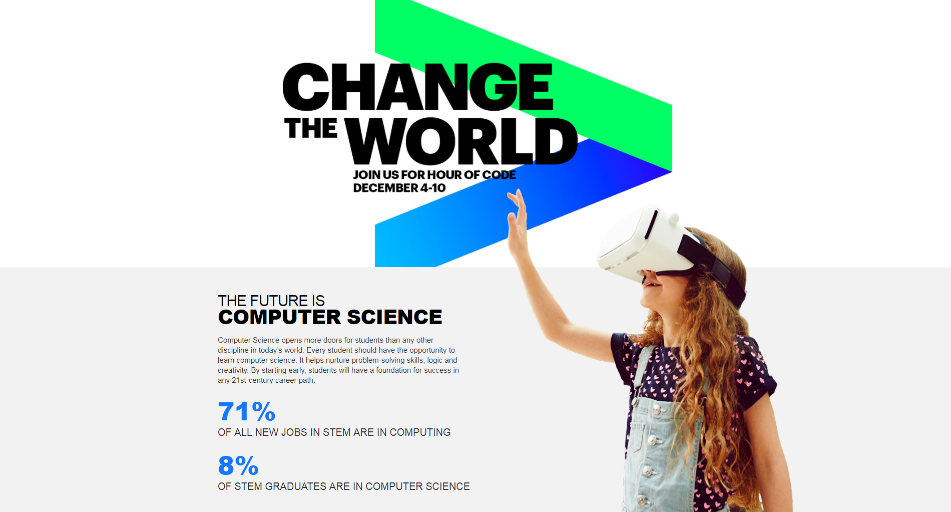 Code.org® is a non-profit dedicated to expanding access to computer science and increasing participation by women and underrepresented minorities. Our vision is that every student in every school should have the opportunity to learn computer science, just like biology, chemistry or algebra. Code.org organizes the annual Hour of Code campaign which has engaged 10% of all students in the world and provides the leading curriculum for K-12 computer science in the largest school districts in the United States. Code.org is supported by generous donors including Microsoft, Facebook, the Infosys Foundation, Google, Omidyar Network, and many more.