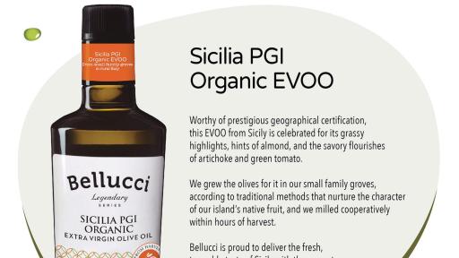 To get closer to this island’s treasure groves and fully appreciate the fruits of human toil, Bellucci is unveiling its freshly harvested Sicilia PGI Organic Extra Virgin Olive Oil as the newest addition to its Legendary Series. True to its cultivars and origin, Sicilia PGI Organic coats the palate with hints of nutty almond and savory undertones of artichoke, coupled with fresh green tomato. It’s unlike any other – a truly authentic gem.