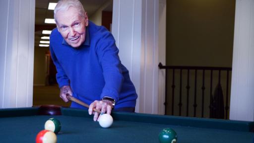 Jim McFarland enjoys shooting pool at a Brookdale community, along with many other activities