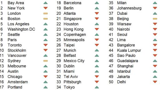 - Thirty out of 50 cities improved on more than half of their indicators, with Latin America and Europe seeing the highest percentage of their cities move up.