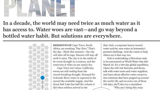 - Serie de documentales sobre el derroche de agua: Colgate está ayudando a producir una serie de documentales en los que Guli destacara el problema de la escasez de agua en el Gran Lago Salado de Utah; explicara el origen del agua en los Catskills de Nueva York, y presentara soluciones innovadoras para ayudar a la agricultura de California.