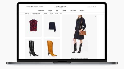 Gemäß der Multi-Channel-Strategie von Givenchy ermöglicht es die zentrale Shopping-Funktion der Plattform den Kunden, die Verfügbarkeit der Artikel in den Retail Stores der Marke abzufragen, die Lieferung ihrer Online-Einkäufe in ein bestimmtes Geschäft zu wählen (Click & Collect) und Boutique-Termine für Anproben zu buchen.