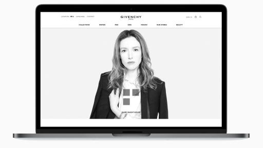 Der Onlineshop www.givenchy.com, dessen Webdesign unter der Leitung von Kreativdirektorin Clare Waight Keller mit der Londoner Agentur R/GA kreiert wurde, bietet dem renommierten Modeunternehmen mehr Kundennähe denn je zuvor. Seine sehr ansprechende Benutzeroberfläche, die von einer 360°-Strategie inklusive Online-Medien, E-Mailing und Social Media gestützt wird, gibt den Followern die Unmittelbarkeit, die sie sich wünschen, und die Freiheit, ihr Givenchy-Erlebnis nach Belieben zu gestalten.