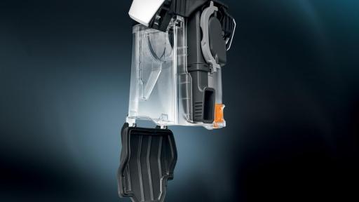Dans la première étape de la filtration, les grosses particules sont soigneusement séparées de la poussière fine. Ensuite, la poussière est conservée dans le filtre plissé Gore® CleanStream® situé dans l’aspirateur. Au cours d’une utilisation normale, le contenant du filtre facile à retirer doit être rincé à l’eau courante une ou deux fois par année après que son nettoyage ait été indiqué par des capteurs. Le processus d’élimination hygiénique a été certifié par l’American IBR Laboratories des États-Unis, leader international en vérification des performances de filtration.