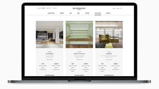 In linea con la strategia omnicanale di Givenchy, questa caratteristica della piattaforma con il vantaggio dell’acquisto consente ai clienti di verificare la disponibilità di scorte nei negozi di marca, scegliere la consegna in negozio per gli acquisti online (clicca e ritira) e prenotare gli appuntamenti in negozio per provare i vestiti.