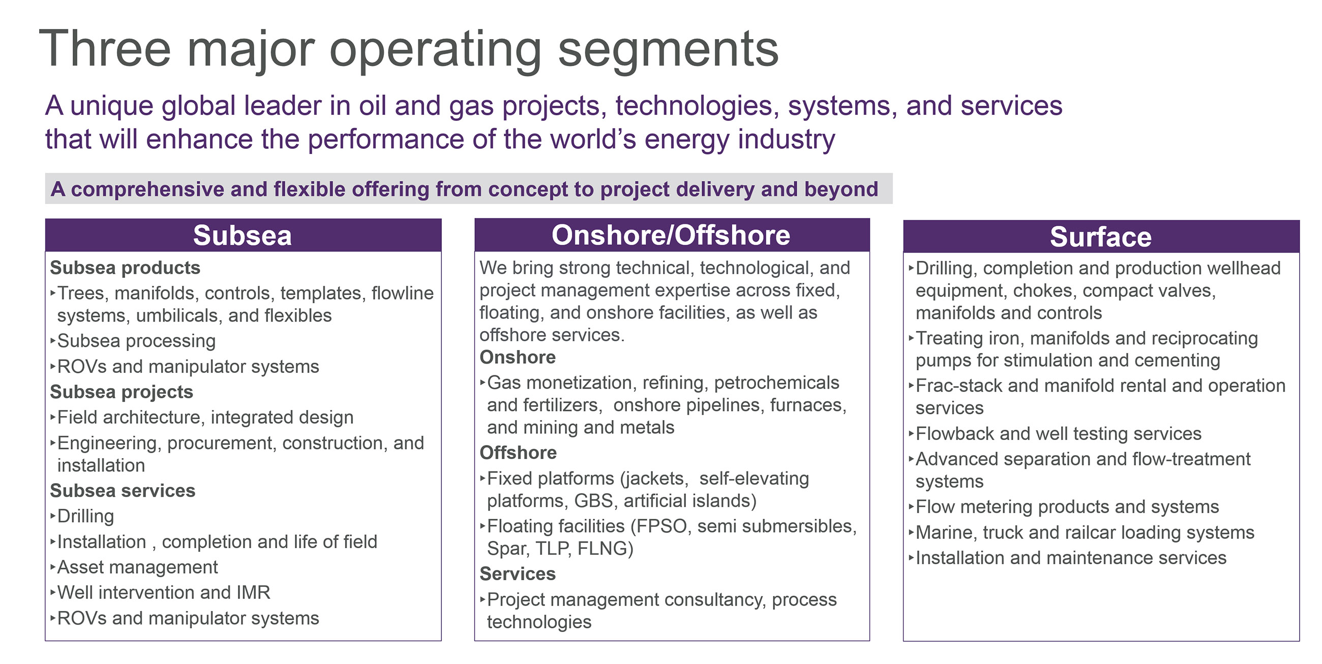 We are competent to address the growing demand in Indian onshore market for a world class EPC contractor to minimize the risk in terms of cost and delivery schedule and to improve the HSE climate. Our aim is to deliver safe and successful energy projects across the world for the benefit of our stakeholders.